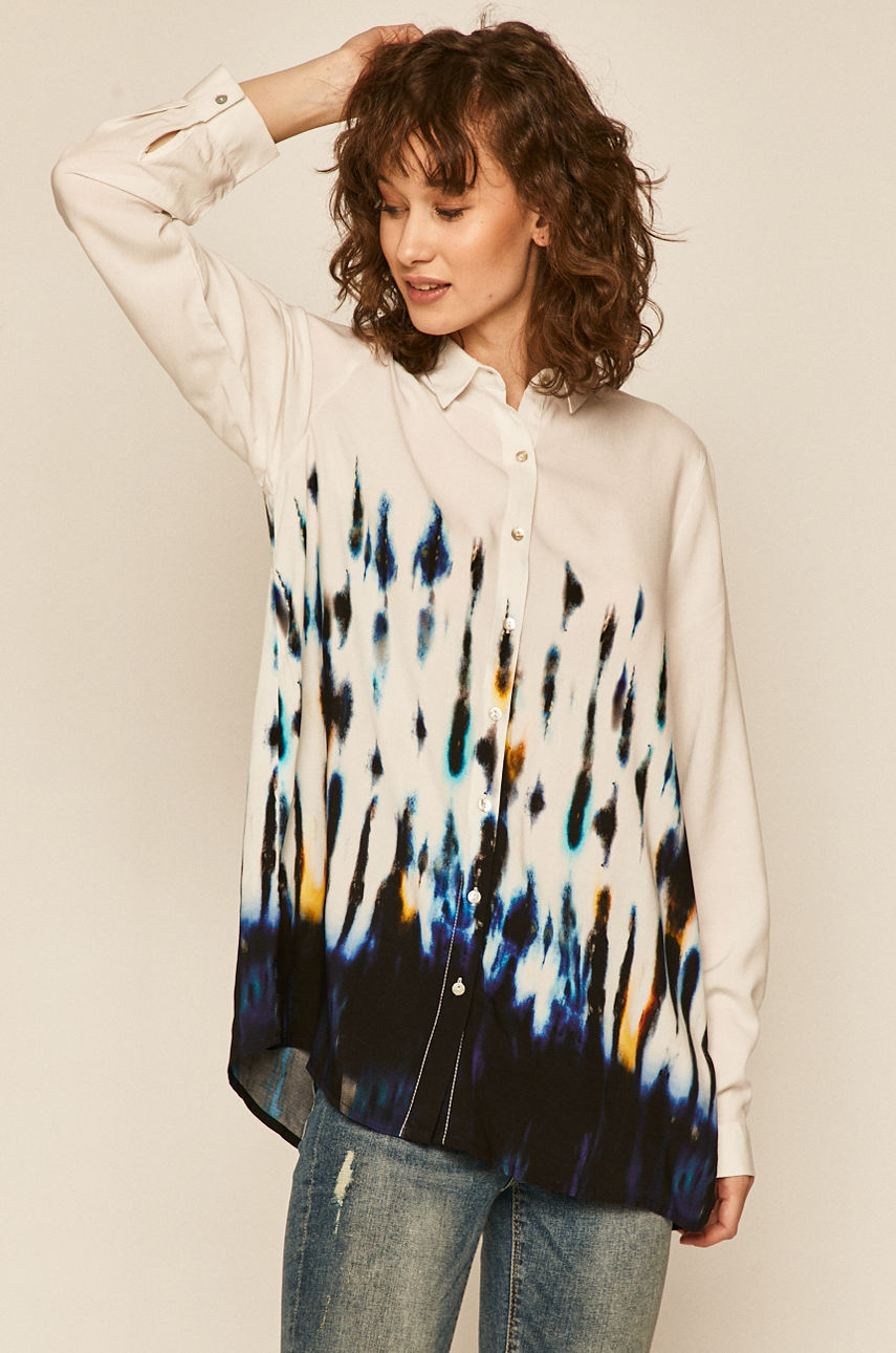 Koszula z kolekcji Medicine. Model wykonany z wzorzystej tkaniny. – Prosty fason. – Zapięcie na guziki. – Rękawy z zapinanymi mankietami. – Wzorzysta tkanina. – Długość rękawa: 61 cm. – Szerokość pod pachami: 54 cm. – Długość: 66 cm. – Wymiary podane dla rozmiaru: S. Wzór: wzorzyste Fason: regular Rękaw: długi Kołnierzyk: klasyczny Okazje: casual Skład: 100 % Wiskoza ID produktu: 6901-KDD301 Kod producenta: RS20.KDD301