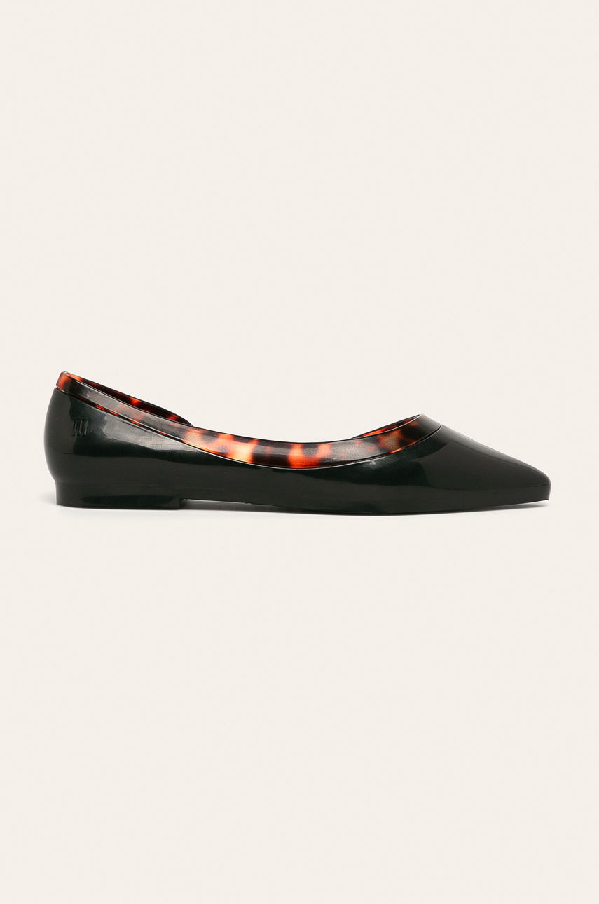 Baleriny z kolekcji Melissa. Model wykonany z materiału syntetycznego. – Buty wykonane są z aromatyzowanego, unikalnego tworzywa Mel-flex – mieszanki plastiku i kauczuku o charakterystycznym zapachu gumy balonowej. – Spiczasty, miękki nosek. – Usztywniony zapiętek. – Komfortowe wnętrze. – Model na płaskim obcasie. Materiał: syntetyczny Obcas: płaski Skład: Cholewka: Materiał syntetyczny, Wnętrze: Materiał syntetyczny, Podeszwa: Materiał syntetyczny ID produktu: 4900-OBD0K5 Kod producenta: M32905