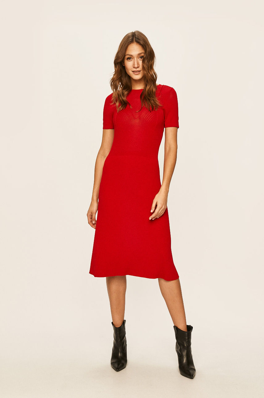 Sukienka z kolekcji Miss Sixty. Rozkloszowany model wykonany z gładkiej dzianiny. Uwaga: oryginalna rozmiarówka produktów tej marki jest rozmiarówką włoską. Informujemy, że rozmiary na metkach mogą różnić się od zamawianych ze względu na zastosowany przelicznik. – Rozkloszowany fason. – Krótki rękaw. – Okrągły dekolt. – Cienka, elastyczna dzianina. – Materiał z fakturą. – Szerokość pod pachami: 33 cm. – Długość: 115 cm. – Wymiary podane dla rozmiaru: S. Wzór: gładkie Materiał: dzianina Długość: midi Dekolt: okrągły Rękaw: krótki Okazje: casual Fason: rozkloszowany Okazje: biuro Skład: Materiał 1: 18 % Poliamid, 82 % Wiskoza, Materiał 2: 2 % Elastan, 31 % Poliamid, 67 % Wiskoza ID produktu: 4901-SUD11N Kod producenta: 601RJ4310000