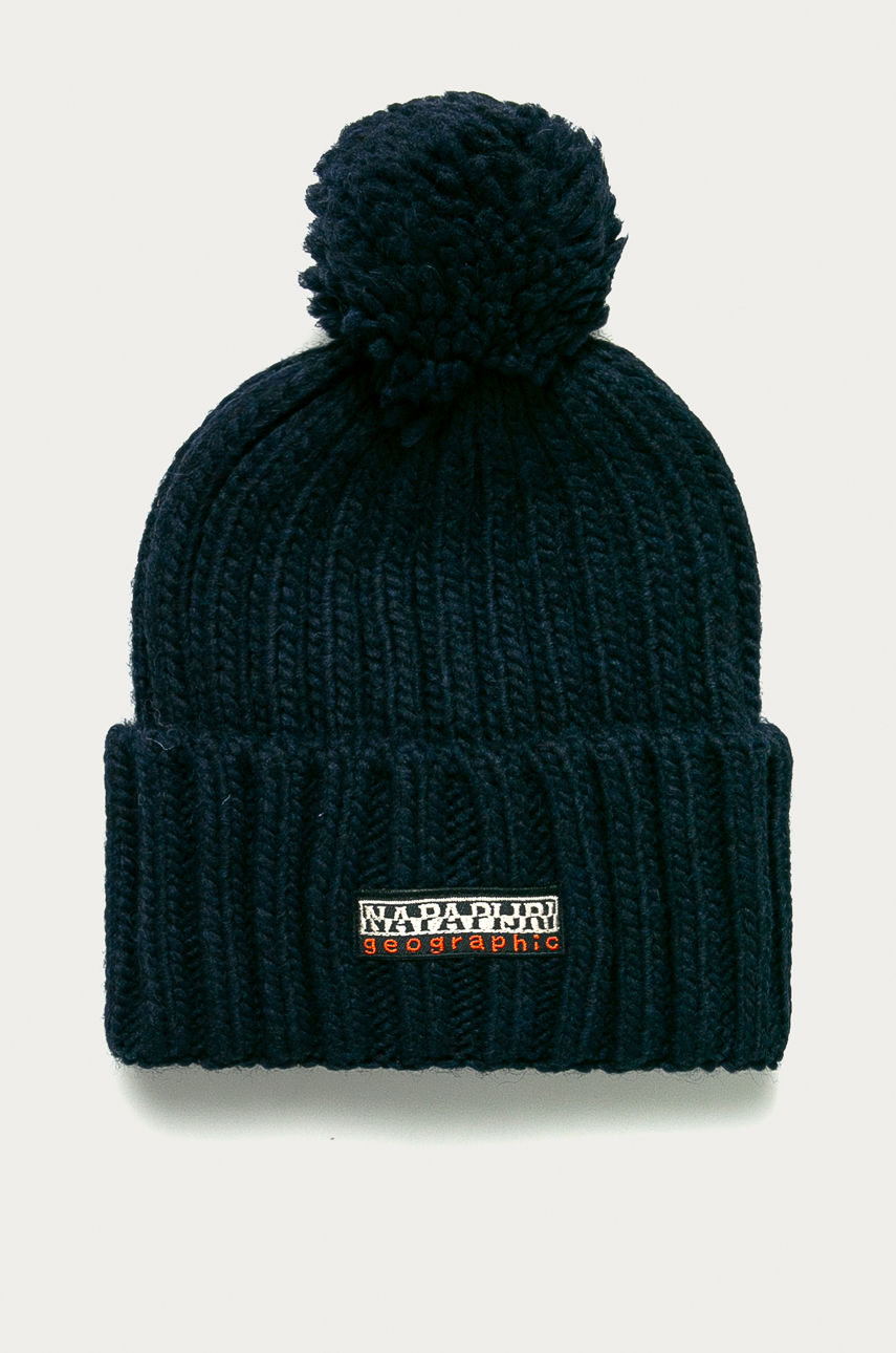 Czapka z kolekcji Napapijri. Model wykonany z gładkiej dzianiny. – Model z pomponem. – Gruba, elastyczna dzianina. – Ozdobny detal z przodu. Wzór: gładkie Materiał: z domieszką wełny Dzianina: gruba Skład: 75 % Akryl, 10 % Poliamid, 10 % Wełna, 5 % Wiskoza ID produktu: 4900-CAU00R Kod producenta: NP0A4EMC