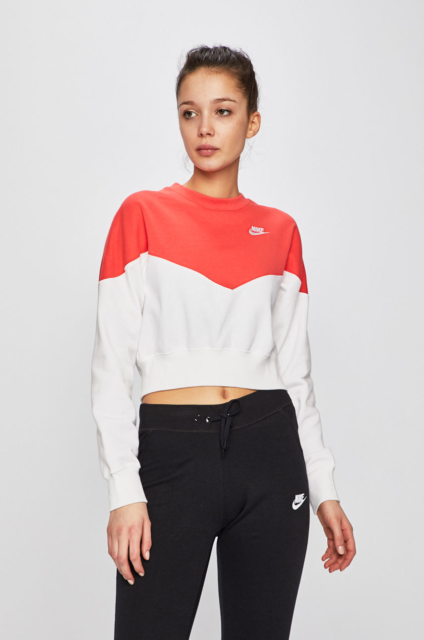 Bluza z kolekcji Nike. Model wykonany z dzianiny z nadrukiem. – Prosty fason. – Okrągły dekolt. – Rękawy wykończone ściągaczem. Wzór: nadruk Kaptur: bez kaptura Skład: 80 % Bawełna, 20 % Poliester, ID produktu: -90-BLD005 Kod producenta: C.AR2505.100