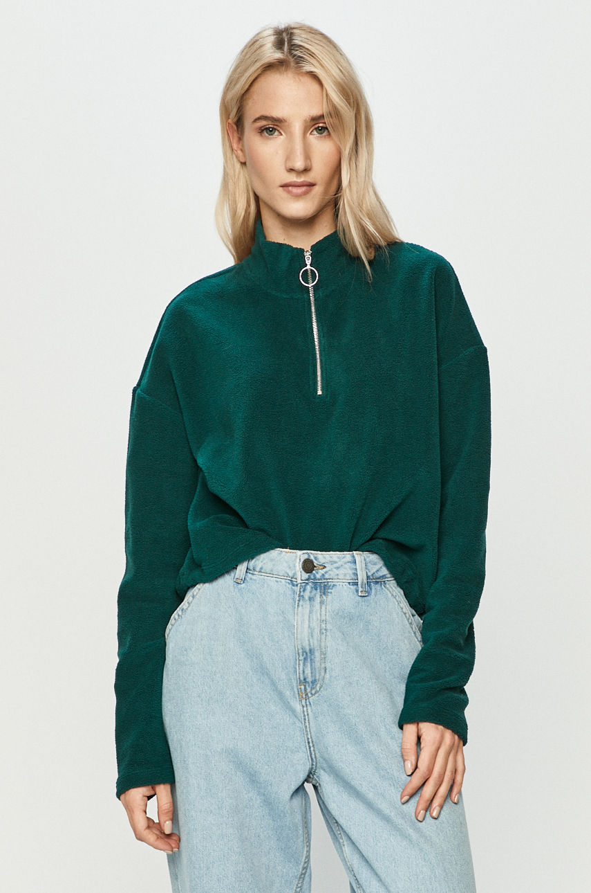 Bluza z kolekcji Noisy May. Model wykonany z gładkiej dzianiny. – Prosty fason. – Podwyższony kołnierz. – Krótkie zapięcie na suwak. – Obniżona linia ramion. – Długość rękawa(mierzona od kołnierza): 74 cm. – Długość: 51 cm. – Szerokość pod pachami: 54 cm. – Wymiary podane dla rozmiaru: S. Wzór: gładkie Kaptur: bez kaptura Skład: 100 % Poliester ID produktu: 4900-BLD0LS Kod producenta: 27013794