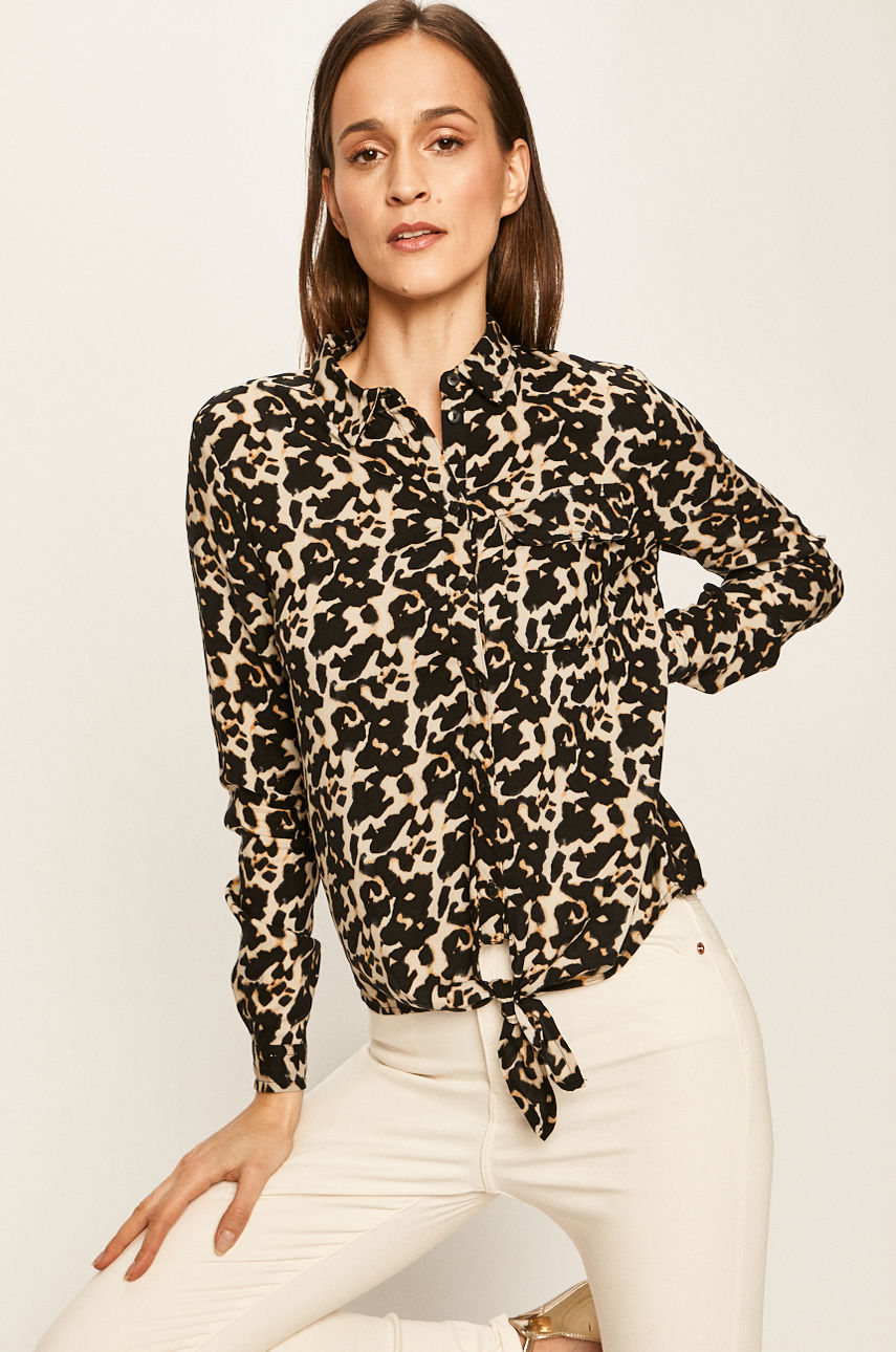Koszula z kolekcji Noisy May. Model wykonany z gładkiej tkaniny. – Ozdobne wiązanie. – Wzorzysta tkanina. – Długość: 62 cm. – Wymiary podane dla rozmiaru: S. Wzór: gładkie Fason: regular Rękaw: długi Materiał: wiskoza Kołnierzyk: klasyczny Okazje: casual Skład: 100 % Wiskoza ID produktu: 4901-KDD06R Kod producenta: 27011944