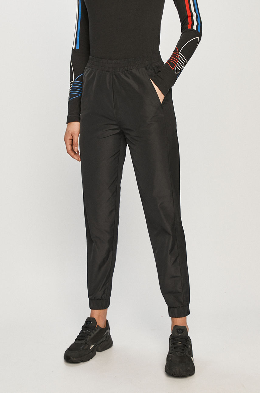 Spodnie z kolekcji Noisy May. Model wykonany z gładkiego materiału. – Elastyczna listwa w pasie. – Wsuwane kieszenie. – Prosta nogawka. – Nogawki wykończone ściągaczem. – Gładka tkanina. – Szerokość w pasie: 37 cm. – Szerokość w biodrach: 52 cm. – Wysokość stanu: 28 cm. – Szerokość nogawki na dole: 13 cm. – Szerokość nogawki: 31 cm. – Długość: 99 cm. – Wymiary podane dla rozmiaru: S. Wzór: gładkie Materiał: tkanina Skład: 100 % Poliester ID produktu: 4891-SPD02U Kod producenta: 27015086