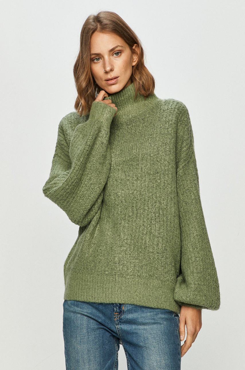 Sweter z kolekcji Noisy May. Model z półgolfem, wykonany z gładkiej dzianiny. – Luźny model. – Długi rękaw. – Obniżona linia ramion. – Efektowny splot. – Długość rękawa(mierzona od dekoltu): 77 cm. – Długość: 61 cm. – Szerokość pod pachami: 60 cm. – Wymiary podane dla rozmiaru: S. Wzór: gładkie Dekolt: półgolf Dzianina: średniej grubości Skład: 75 % Akryl, 3 % Elastan, 22 % Poliester ID produktu: 4900-SWD0A3 Kod producenta: 27012447