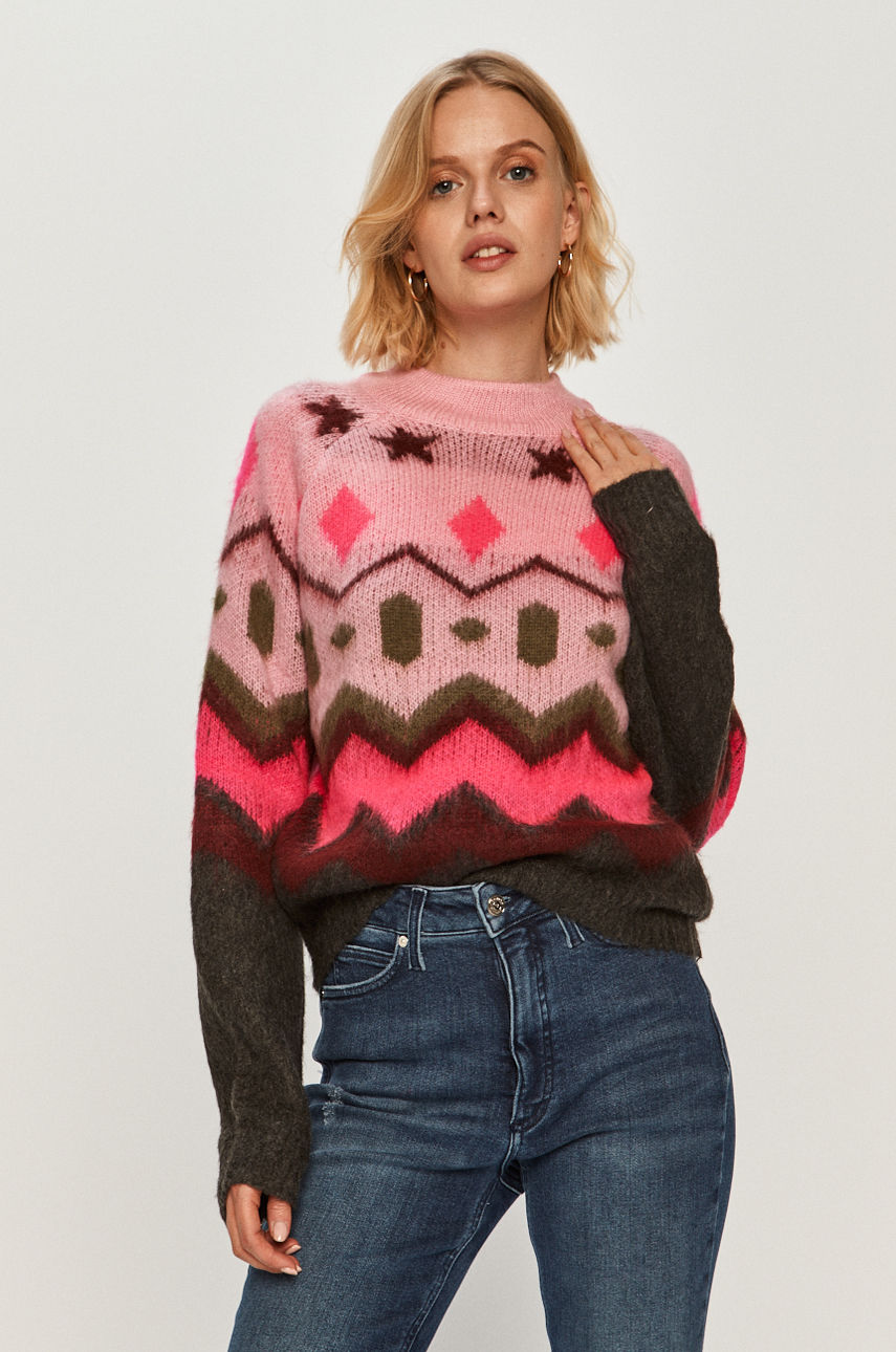 Sweter z kolekcji Noisy May. Model z okrągłym dekoltem, wykonany z cienkiej dzianiny. – Prosty fason. – Raglanowy rękaw. – Długi rękaw. – Okrągły dekolt. – Długość rękawa(mierzona od kołnierzyka): 76 cm. – Długość: 56,5 cm. – Szerokość pod pachami: 51,5 cm. – Wymiary podane dla rozmiaru: S. Wzór: wzorzyste Dekolt: okrągły Dzianina: cienka Skład: 100 % Akryl ID produktu: 4900-SWD0A5 Kod producenta: 27013148