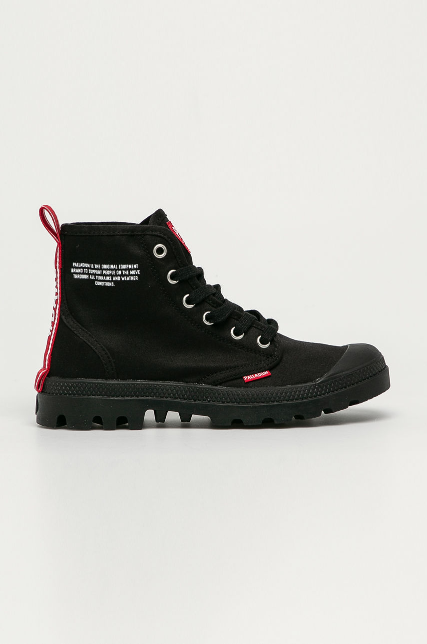 Trampki z kolekcji Palladium. Model wykonany z materiału tekstylnego. – Okrągły, gumowany nosek. – Antypoślizgowa, gumowa podeszwa. – Żłobiona podeszwa. – Usztywniony zapiętek. – Tekstylna wkładka. – Model na platformie. – Sznurowany model. – Wysokość platformy: 3,5 cm. – Długość wkładki wynosi: 22,5 cm. – Wymiary podane dla rozmiaru: 37. Obcas: platforma Materiał: tekstylny Skład: Cholewka: Materiał tekstylny, Wnętrze: Materiał tekstylny, Podeszwa: Materiał syntetyczny ID produktu: 4901-OBD39L Kod producenta: 76258.008
