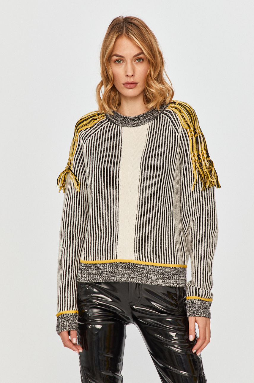 Dostępne rozmiary są przeliczone z włoskiej rozmiarówki producenta na standardową rozmiarówkę europejską. Zamawiany rozmiar może różnić się od widocznego na metce (IT 38/XXS = EU XS). Dla pewności prosimy o zapoznanie się z tabelą rozmiarową. Sweter z kolekcji Patrizia Pepe. Model z okrągłym dekoltem, wykonany z wzorzystej dzianiny. – Model z ozdobnymi frędzlami. – Prosty fason. – Długi rękaw. – Okrągły dekolt. – Wykończenie ze ściągacza. Wzór: wzorzyste Dekolt: okrągły Materiał: z domieszką wełny Dzianina: średniej grubości Skład: 20 % Poliamid, 15 % Poliester, 35 % Wełna, 30 % Wiskoza ID produktu: 4900-SWD04Z Kod producenta: 2M3937.A7P3