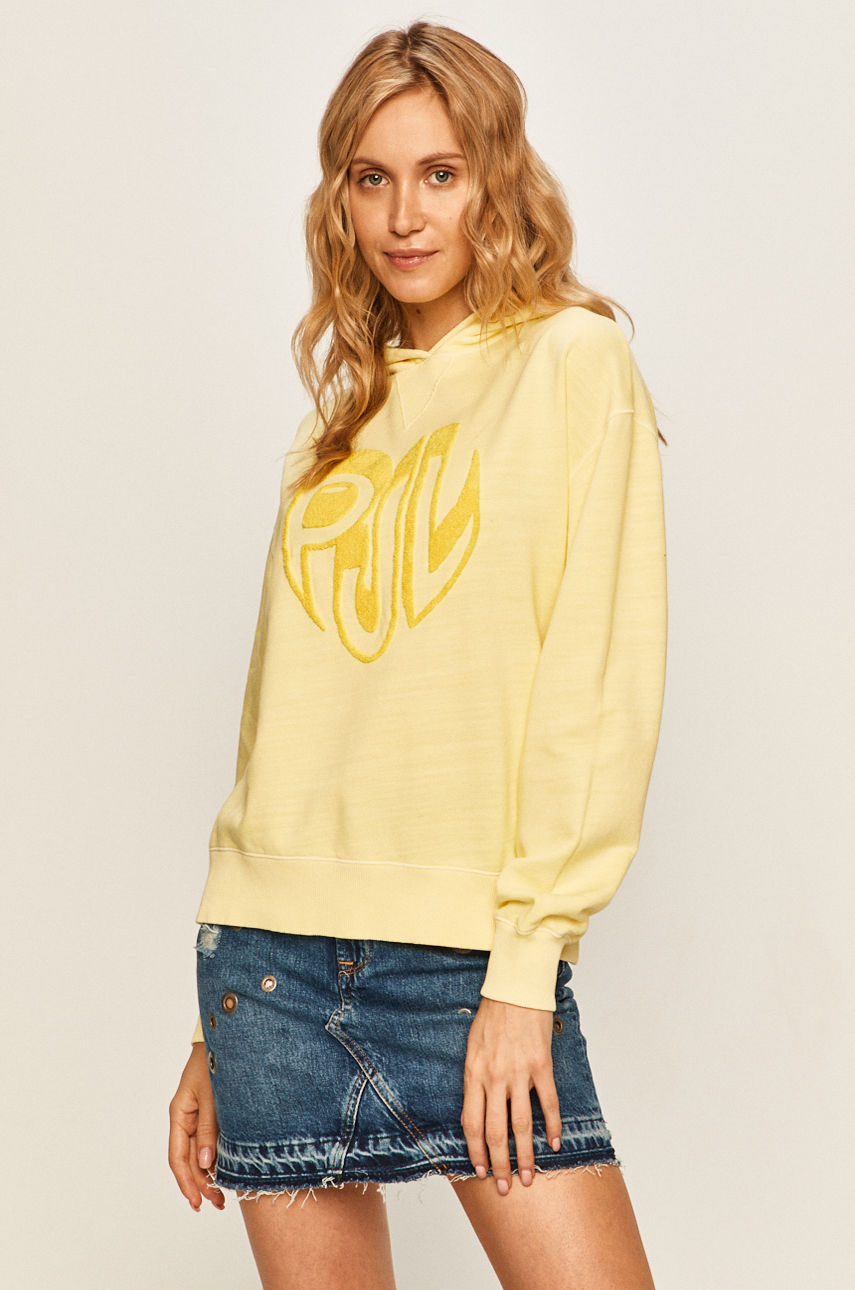 Bluza z kapturem z kolekcji Pepe Jeans. Model wykonany z cienkiej, lekko elastycznej dzianiny. – Luźny model. – Obniżona linia ramion. – Wykończenie ze ściągacza. – Model z aplikacją. – Długość rękawa(mierzona od kaptura): 73 cm. – Długość: 61 cm. – Szerokość pod pachami: 53 cm. – Wymiary podane dla rozmiaru: S. Wzór: aplikacja Materiał: bawełna Kaptur: z kapturem Skład: 100 % Bawełna ID produktu: 4900-BLD0MC Kod producenta: PL580953.031