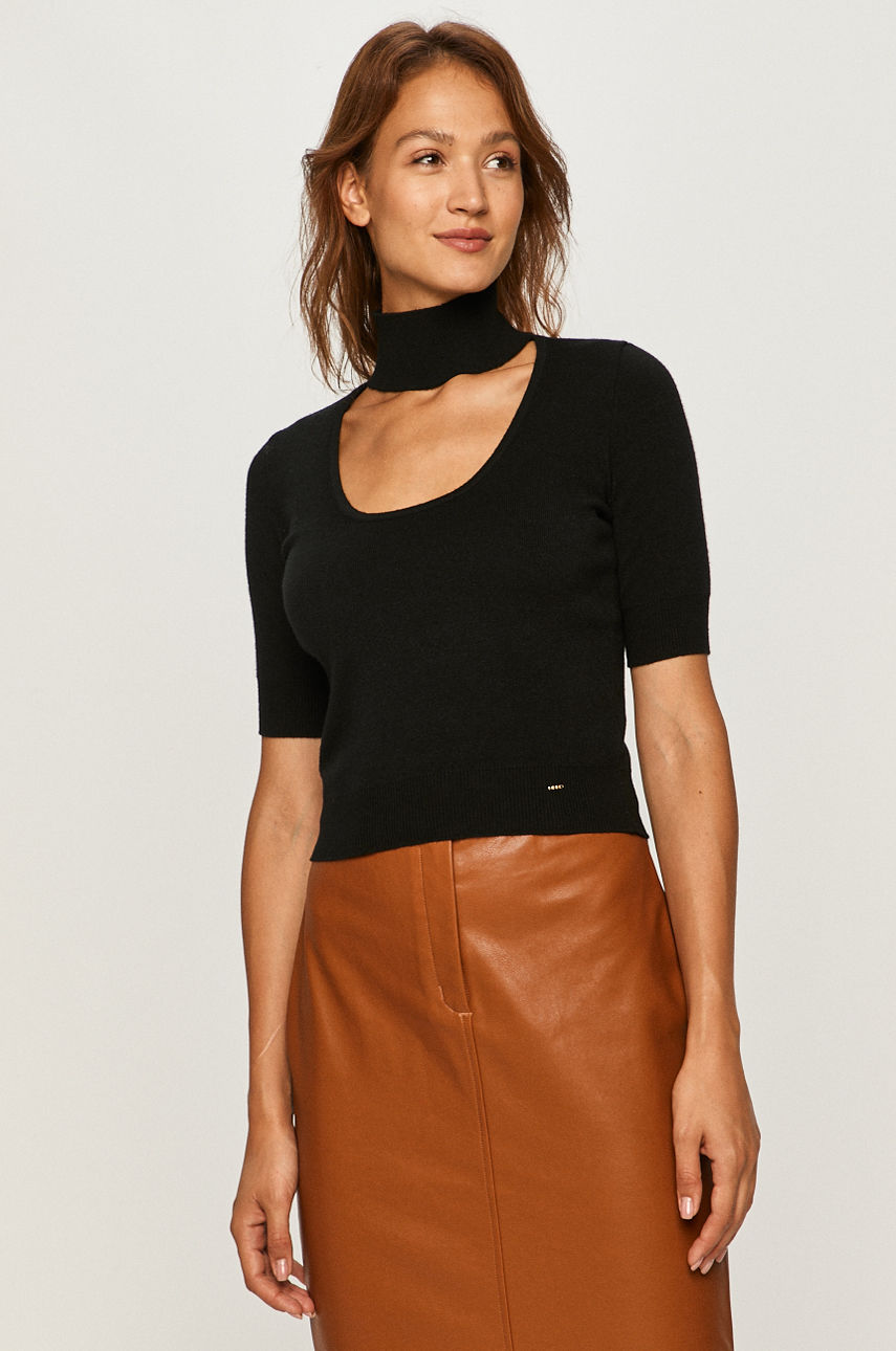 Sweter z kolekcji Pinko. Model wykonany z cienkiej dzianiny. Uwaga: oryginalna rozmiarówka produktów tej marki jest rozmiarówką włoską. Informujemy, że rozmiary na metkach mogą różnić się od zamawianych ze względu na zastosowany przelicznik. – Dopasowany model. – Krótki rękaw. – Okrągły dekolt. – Długość: 50 cm. – Szerokość pod pachami: 43 cm. – Wymiary podane dla rozmiaru: S. Wzór: gładkie Dekolt: okrągły Dekolt: półgolf Dzianina: cienka Skład: 20 % Poliamid, 28 % Poliester, 52 % Wiskoza ID produktu: 4900-SWD0DH Kod producenta: 1B14X9.Y6PJ