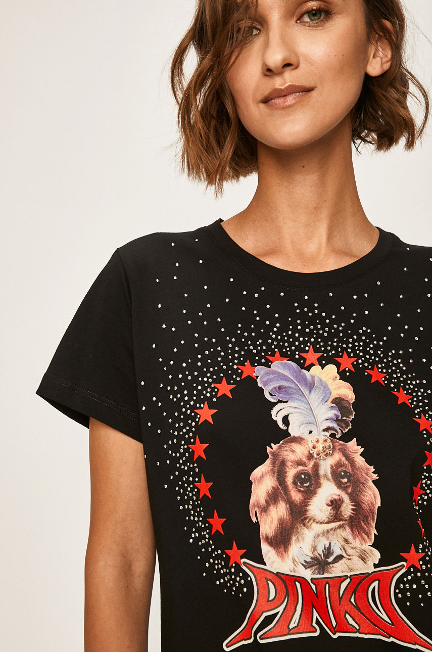 T-shirt z kolekcji Pinko. Model wykonany z dzianiny. Uwaga: oryginalna rozmiarówka produktów tej marki jest rozmiarówką włoską. Informujemy, że rozmiary na metkach mogą różnić się od zamawianych ze względu na zastosowany przelicznik. – Prosty fason. – Model z dżetami. – Okrągły dekolt. – Cienka, elastyczna dzianina. – Szerokość pod pachami: 48 cm. – Długość: 61,5 cm. – Wymiary podane dla rozmiaru: S. Wzór: nadruk Wzór: aplikacja Dekolt: okrągły Materiał: bawełna Skład: 100 % Bawełna ID produktu: 4901-TSD0J3 Kod producenta: 1G14X4.Y5B7