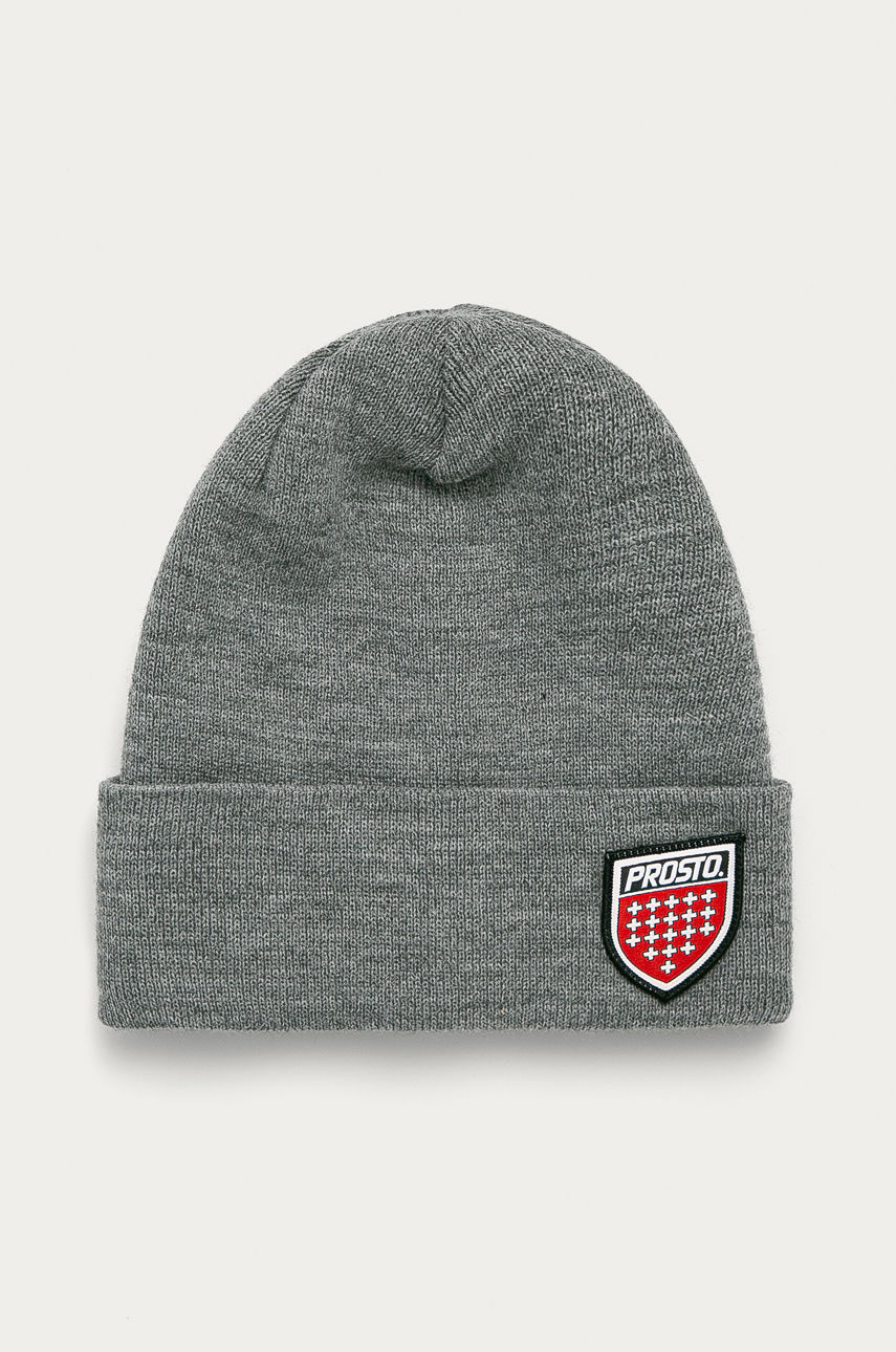 Czapka z kolekcji Prosto. Model wykonany z dzianiny z aplikacją. – Wywijana krawędź. – Model beanie. – Elastyczna dzianina. Wzór: aplikacja Dzianina: średniej grubości Skład: 100 % Akryl ID produktu: -100-CAU023 Kod producenta: 9053.GREY