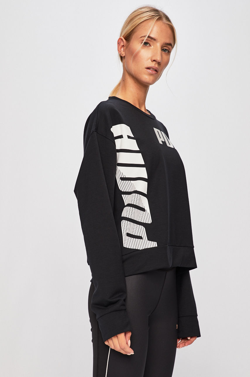 Bluza z kolekcji Puma. Model wykonany z dzianiny z nadrukiem. – Materiał dryCell zapewnia komfort oraz uczucie suchości. – Luźny fason. – Okrągły dekolt. – Model z nadrukiem. – Szerokość pod pachami: 64 cm. – Obniżona linia ramion. – Długość rękawa(mierzona od dekoltu): 74 cm. – Długość: 53 cm. – Wymiary podane dla rozmiaru: S. Wzór: nadruk Kaptur: bez kaptura Skład: 7 % Elastan, 69 % Poliester, 24 % Wiskoza ID produktu: 4910-BLD0ET Kod producenta: 580078