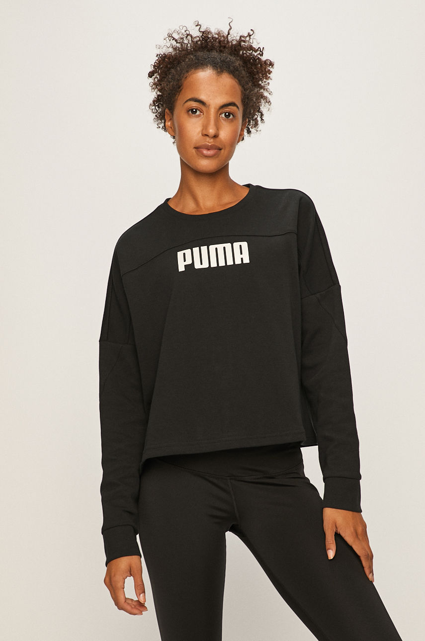 Bluza z kolekcji Puma. Model wykonany z dzianiny z nadrukiem. – Luźny model. – Okrągły dekolt. – Obniżona linia ramion. – Model z nadrukiem. – Długość rękawa(mierzona od dekoltu): 74 cm. – Długość: 55 cm. – Szerokość pod pachami: 65 cm. – Wymiary podane dla rozmiaru: S. Wzór: nadruk Kaptur: bez kaptura Skład: 72 % Bawełna, 28 % Poliester ID produktu: 4910-BLD0F3 Kod producenta: 580086
