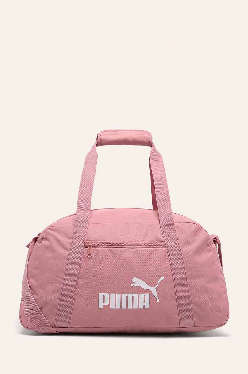 Torba z kolekcji Puma. Model wykonany z materiału tekstylnego. – Zapięcie na suwak. – Torebka do noszenia w ręku lub na ramieniu. – Krótkie uchwyty. – Nieodpinany długi pasek z regulacją. – Mieści format A4. – Model z nadrukiem. – Głębokość: 20 cm. – Wysokość: 23 cm. – Szerokość u podstawy: 47 cm. – Długość uchwytów: 59 cm. Wzór: nadruk Materiał: tekstylny Wielkość: mieści A4 Rodzaj: treningowe i podróżne Skład: 100 % Poliester ID produktu: 4900-TOD14A Kod producenta: 75722