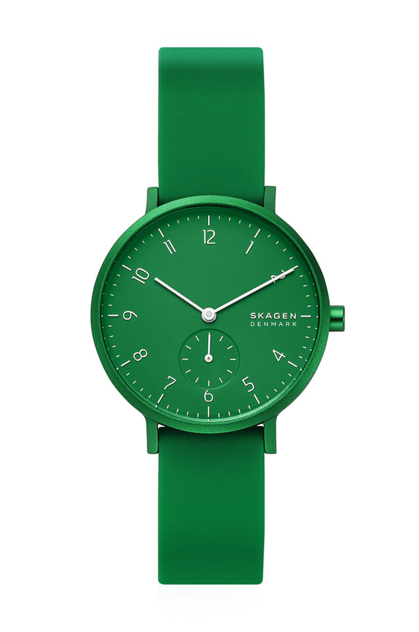 Zegarek z kolekcji Skagen. Model z okrągłą tarczą i paskiem z tworzywa. – Kształt koperty: okrągły. – Materiał paska: tworzywo sztuczne. – Wodoszczelność: WR. 30M (3ATM) – odporny na zachlapania. – Szkło: mineralne (utwardzane, bardzo odporne na stłuczenia, ciężko je zarysować). – Mechanizm: kwarcowy, zasilany baterią. – Średnica koperty: 36 mm. – Grubość koperty: 9 mm. – Szerokość paska: 16 mm. Skład: Aluminium, Materiał syntetyczny, Szkło mineralne ID produktu: 100-AKD14T Kod producenta: SKW2804