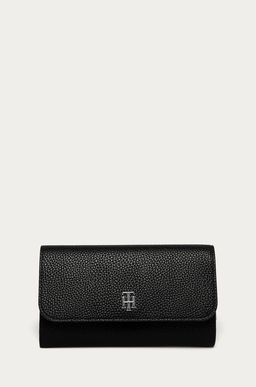 Duży portfel z kolekcji Tommy Hilfiger. Model wykonany ze skóry ekologicznej. – Model zapakowany w pudełko firmowe. – Kieszeń na bilon zapinana na zamek. – Przegroda na banknoty. – Gładki materiał. – Wymiary: 19 x 11 x 3 cm. Wzór: gładkie Materiał: imitacja skóry licowej Skład: Poliuretan ID produktu: 4900-PFD04W Kod producenta: AW0AW09023