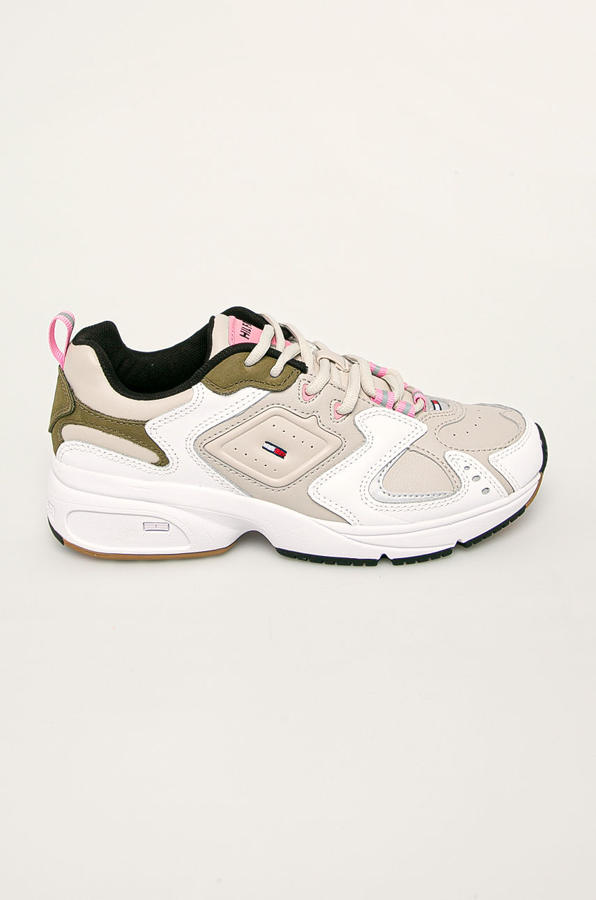 Buty z kolekcji Tommy Jeans. Model wykonany z połączenia skóry naturalnej, materiału tekstylnego i materiału syntetycznego. – Okrągły nosek. – Antypoślizgowa podeszwa. – Gumowa podeszwa. – Usztywniony zapiętek. – Tekstylne wnętrze. – Sznurowany model. – Długość wkładki wynosi: 23,5 cm. – Wymiary podane dla rozmiaru: 37. Materiał: tekstylny Materiał: syntetyczny Obcas: płaski Materiał: skóra licowa Skład: Cholewka: Materiał syntetyczny, Materiał tekstylny, Skóra naturalna, Wnętrze: Materiał tekstylny, Podeszwa: Materiał syntetyczny ID produktu: 4901-OBD062 Kod producenta: EN0EN00721
