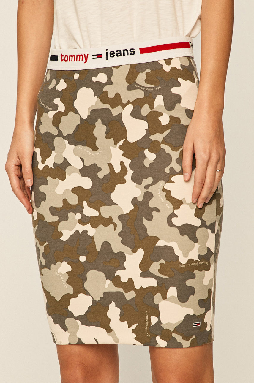 Spódnica z kolekcji Tommy Jeans. Model o prostym kroju, wykonany z wzorzystej dzianiny. – Elastyczna listwa w pasie. – Prosty fason. – Cienka, elastyczna dzianina. – Wzorzysta dzianina. – Szerokość w pasie: 33 cm. – Długość: 50 cm. – Wymiary podane dla rozmiaru: S. Wzór: wzorzyste Materiał: dzianina Długość: mini Materiał: z elastanem Okazje: casual Fason: prosty Skład: 2 % Elastan, 69 % Poliester, 29 % Wiskoza ID produktu: 4901-SDD040 Kod producenta: DW0DW08301
