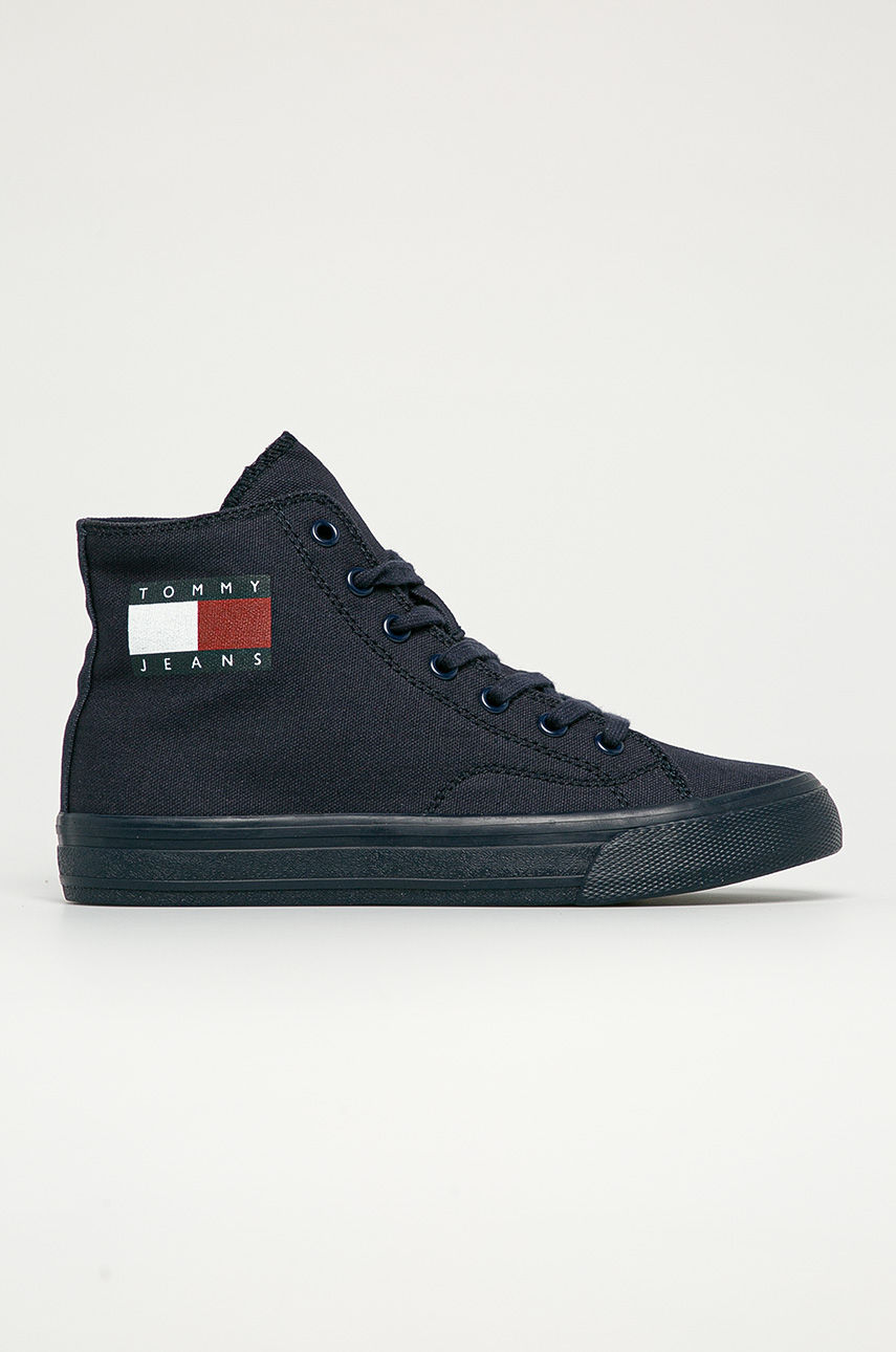 Trampki z kolekcji Tommy Jeans. Model wykonany z materiału tekstylnego. – Okrągły, usztywniony nosek. – Gumowa podeszwa. – Usztywniony zapiętek. – Tekstylne wnętrze. – Sznurowany model. – Długość wkładki wynosi: 24 cm. – Wymiary podane dla rozmiaru: 37. Materiał: tekstylny Obcas: płaski Skład: Cholewka: Materiał tekstylny, Wnętrze: Materiał tekstylny, Podeszwa: Materiał syntetyczny ID produktu: 4900-OBD0ID Kod producenta: EN0EN00937C87