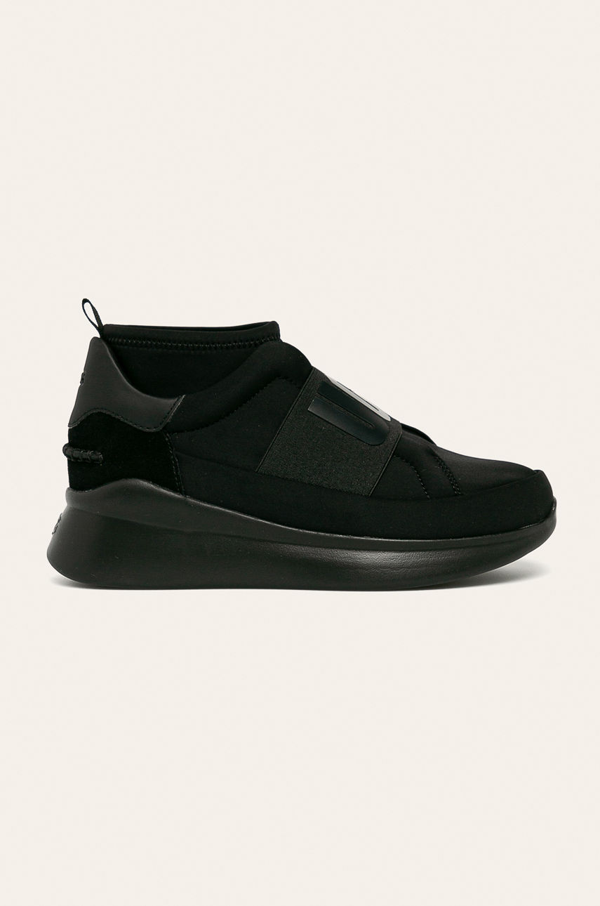 Buty z kolekcji UGG. Model wykonany z połączenia materiału tekstylnego i skóry naturalnej. – Trwała i lekka podeszwa Treadlite idealnie sprawdza się zarówno na suchych, jak i mokrych powierzchniach. – Miękki nosek. – Stabilna podeszwa. – Mocno usztywniony zapiętek. – Tekstylne wnętrze. – Model na platformie. – Wysokość platformy: 4,5 cm. – Długość wkładki wynosi: 23,5 cm. – Wymiary podane dla rozmiaru: 37. Obcas: platforma Materiał: skóra zamszowa Materiał: tekstylny Materiał: skóra licowa Skład: Cholewka: Materiał tekstylny, Skóra naturalna, Wnętrze: Materiał tekstylny, Podeszwa: Materiał syntetyczny ID produktu: 4910-OBD2A2 Kod producenta: 1095097