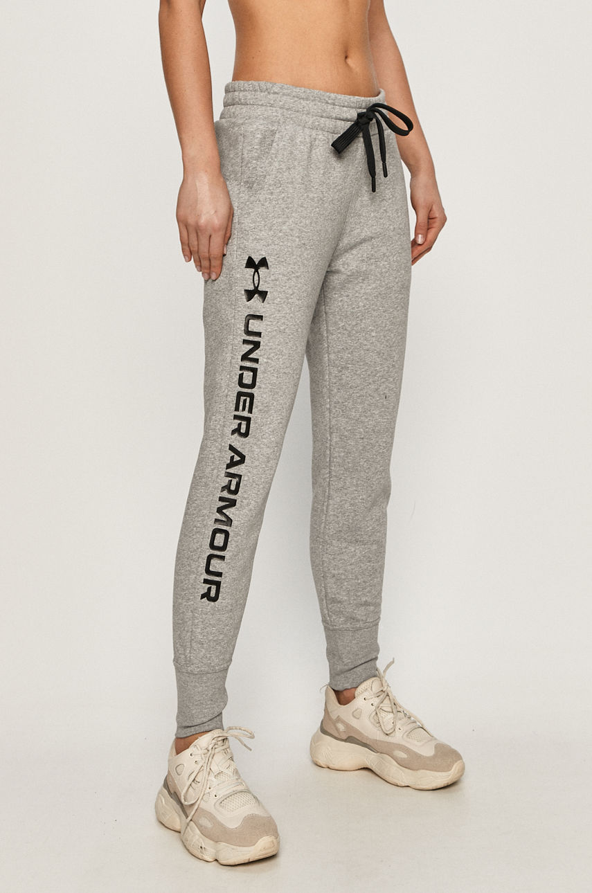 Spodnie z kolekcji Under Armour. Model wykonany z gładkiej dzianiny. – Elastyczna listwa w pasie. – W pasie troczki. – Prosty fason. – Nogawki wykończone ściągaczem. – Wsuwane kieszenie. – Gładka dzianina. – Szerokość w pasie: 39 cm. – Szerokość w biodrach: 53 cm. – Wysokość stanu: 26 cm. – Szerokość nogawki na dole: 10 cm. – Szerokość nogawki: 29 cm. – Długość: 93 cm. – Wymiary podane dla rozmiaru: S. Wzór: gładkie Materiał: dzianina Skład: 80 % Bawełna, 20 % Poliester ID produktu: 4900-SPD0DN Kod producenta: 1356412.035