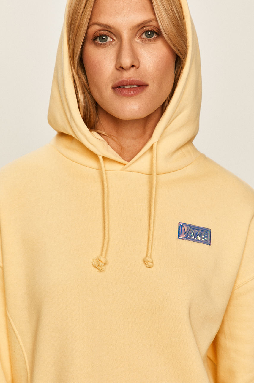 Bluza z kapturem z kolekcji Vans. Model wykonany z dzianiny z aplikacją. – Luźny fason. – Kaptur ściągany troczkami. – Miękko wyściełany model. – Model z aplikacją. – Wykończenie ze ściągacza. – Długość rękawa: 56,5 cm. – Długość: 52 cm. – Szerokość pod pachami: 54 cm. – Wymiary podane dla rozmiaru: S. Wzór: gładkie Materiał: bawełna Kaptur: z kapturem Skład: 100 % Bawełna ID produktu: 4900-BLD0KL Kod producenta: VN0A4DQLVDE1