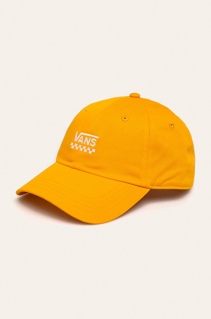 Czapka z daszkiem typu baseball z kolekcji Vans. Model wykonany z tkaniny z aplikacją. – Zakrzywiony daszek. – Regulowany obwód. Wzór: aplikacja Materiał: bawełna Skład: 100 % Bawełna ID produktu: 4901-CAD035 Kod producenta: VN0A31T6SOE1