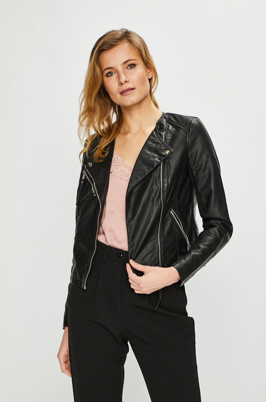 Kurtka z kolekcji Vero Moda. Lekki model wykonany ze skóry ekologicznej. – Dopasowany model. – Nieocieplony model na podszewce. – Zapięcie na suwak. – Zapinane kieszenie. – Kieszonka na piersi. – Ozdobne marszczenia. – Długość rękawa: 61 cm. – Długość: 52 cm. – Szerokość pod pachami: 44 cm. – Szerokość w ramionach: 35 cm. – Wymiary podane dla rozmiaru: S. Podszewka: z podszewką Kaptur: bez kaptura Fason: ramoneska Ocieplenie: przejściowe Materiał: imitacja skóry licowej Skład: Podszewka: 100 % Wiskoza, Materiał zasadniczy: 100 % Poliuretan, ID produktu: 4911-KUD01I Kod producenta: 10211420