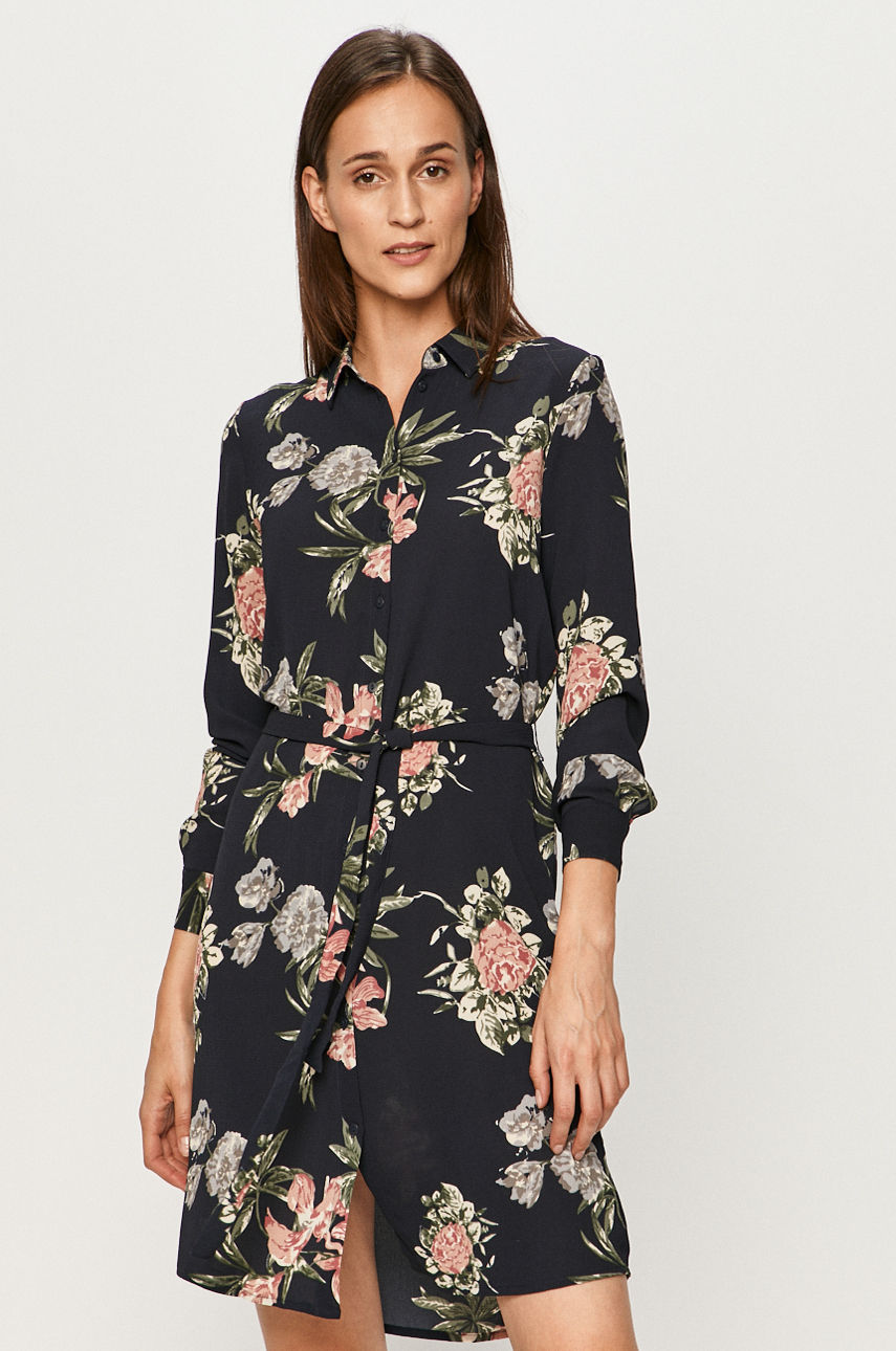 Lekka sukienka z kolekcji Vero Moda. Prosty model wykonany z wzorzystej tkaniny. – Prosty fason. – Długi rękaw. – Model z kołnierzykiem. – Zapięcie na guziki. – Wiązanie w talii. – Cienka, nieelastyczna tkanina. – Szerokość pod pachami: 49 cm. – Długość rękawa: 61,5 cm. – Długość: 95 cm. – Wymiary podane dla rozmiaru: S. Wzór: wzorzyste Materiał: tkanina Długość: mini Rękaw: długi Dekolt: zapinany Materiał: z elastanem Wzór: groszki Okazje: casual Fason: prosty Skład: 3 % Elastan, 97 % Poliester ID produktu: 4900-SUD134 Kod producenta: 10234360