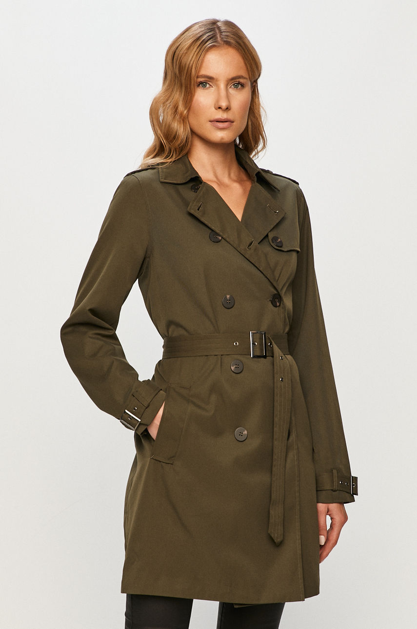 Trencz z kolekcji Vila. Nieocieplony model wykonany z gładkiej tkaniny. – Prosty fason. – W talii pasek. – Wsuwane kieszenie. – Zapięcie na guzik. – Gładka tkanina. – Długość rękawa: 60 cm. – Długość: 87 cm. – Szerokość pod pachami: 51 cm. – Szerokość w ramionach: 42 cm. – Wymiary podane dla rozmiaru: 36. Podszewka: z podszewką Kaptur: bez kaptura Fason: trencz Ocieplenie: nieocieplane Skład: 100 % Poliester ID produktu: 4900-KPD06G Kod producenta: 14057261