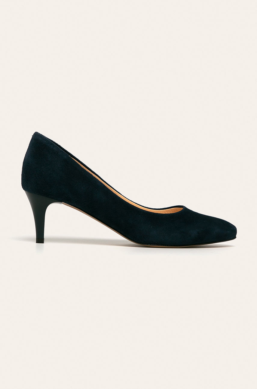 Szpilki z kolekcji Wojas. Model wykonany ze skóry zamszowej. – Spiczasty nosek. – Mocno usztywniony zapiętek. – Skórzane wnętrze. – Model na obcasie typu szpilka. Materiał: skóra zamszowa Obcas: szpilka Nosek: szpic Wysokość obcasa: 5-8 cm Skład: Cholewka: Skóra zamszowa, Wnętrze: Skóra naturalna, Podeszwa: Materiał syntetyczny ID produktu: -100-OBD04F Kod producenta: 3503566